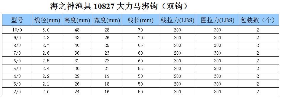 網(wǎng)站當(dāng)前位置:網(wǎng)站首頁 > 10827 大力馬線鐵板鉤 雙鉤- 海神 10827 6/0 大力馬線鐵板鉤 雙綁鉤 海釣鉤 2個/包